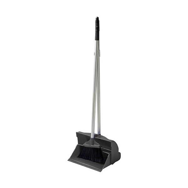 LONG LOBBY HANDLED DUSTPAN & BRUSH - GREY